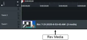 Camtasia packages your recorded streams (screen, camera, and audio) into Rev media on the timeline. This simplified media package allows you to speed up editing by applying layouts and quick effects in Rev.
