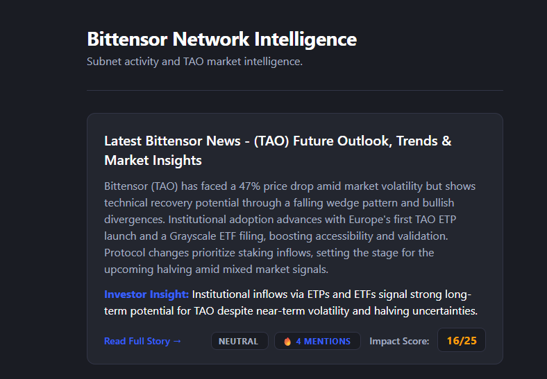 - Specialized Newsletters: Extracts updates from ecosystem-specific outlets like TAO Times.