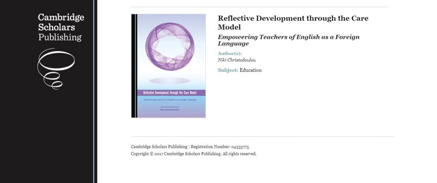 The Soloneion Book Centre and Dr Niki Christodoulou invite you to the launch of her book ‘Reflective Development through the Care Model: Empowering Teachers of English as a Foreign Language’ on Thursday, 5 October 2017 at 6:30 pm.