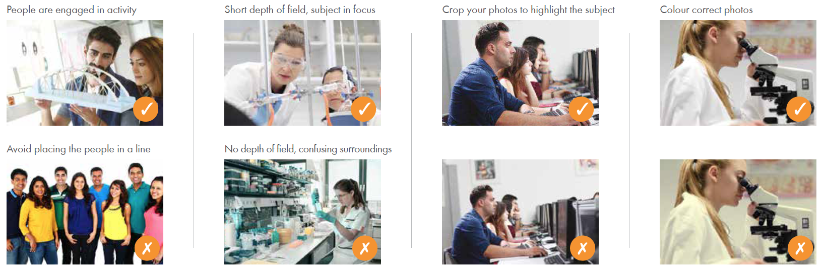 Use photography that shows people and places that make UNIC the place that it is.