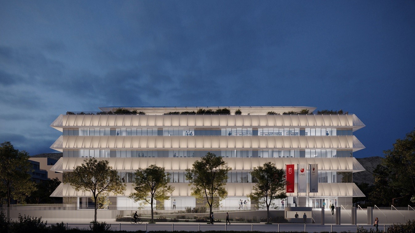 Μια συνολική απόφαση της ομάδας μηχανικών, αρχιτεκτόνων και συμβούλων του έργου ήταν η διατήρηση και ενίσχυση του αρχικού φέροντα οργανισμού για λόγους βιωσιμότητας. Η νέα πρόσοψη σχεδιάστηκε με τρόπο που συνδυάζει οριζόντια, διάτρητα στοιχεία σκίασης με γυάλινες επιφάνειες που επιτρέπουν άπλετο φυσικό αερισμό και φωτισμό. «Η διατήρηση του υπάρχοντος σκελετού αποτελεί από μόνη της μια ριζοσπαστική και ενεργειακά αναγκαία απόφαση για την κατακόρυφη μείωση του αποτυπώματος άνθρακα, σε μια εποχή που οι κατασκευές είναι απαραίτητο να είναι και βιώσιμες». Οι ίδιοι επισημαίνουν ότι ένα κτίριο που προορίζεται για εκπαιδευτική χρήση, απαιτεί ειδικές τεχνικές και λειτουργικές προδιαγραφές που σχετίζονται άμεσα με τη σχολή που θα φιλοξενείται: «Στην Ιατρική σχολή που δημιουργήθηκε για το UNIC, παρείχαμε ιδιαίτερα εξελιγμένες μηχανολογικές υποδομές που υποστηρίζουν εργαστήρια, εξοπλισμό υψηλής ισχύος, συστήματα εξαερισμού και ασφάλειας. Επιπλέον, οι κοινόχρηστοι χώροι πρέπει να είναι ευρύχωροι και ευέλικτοι, ώστε να επιτρέπουν δραστηριότητες με αλληλεπίδραση μεταξύ φοιτητών και καθηγητών, και να δημιουργούν μια ροή κίνησης. Σημαντικός στόχος των εκπαιδευτικών κτιρίων είναι το ανοικτό μαθησιακό περιβάλλον, σε ευχάριστο και φωτεινό περιβάλλον, και οπτικές συνδέσεις μεταξύ διαφορετικών χώρων μάθησης. Ο σχεδιασμός πρέπει επίσης να ενθαρρύνει την κοινωνικοποίηση, την ανταλλαγή ιδεών και την προσαρμοστικότητα σε μελλοντικές εκπαιδευτικές ανάγκες».