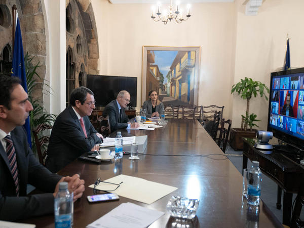 Ο Πρόεδρος της Δημοκρατίας κ. Νίκος Αναστασιάδης συμμετείχε, σήμερα αργά το απόγευμα, μέσω τηλεδιάσκεψης σε έκτακτο Ευρωπαϊκό Συμβούλιο των ηγετών των χωρών μελών της ΕΕ για συνέχιση της συζήτησης του θέματος αντιμετώπισης του κορωνοϊού.
