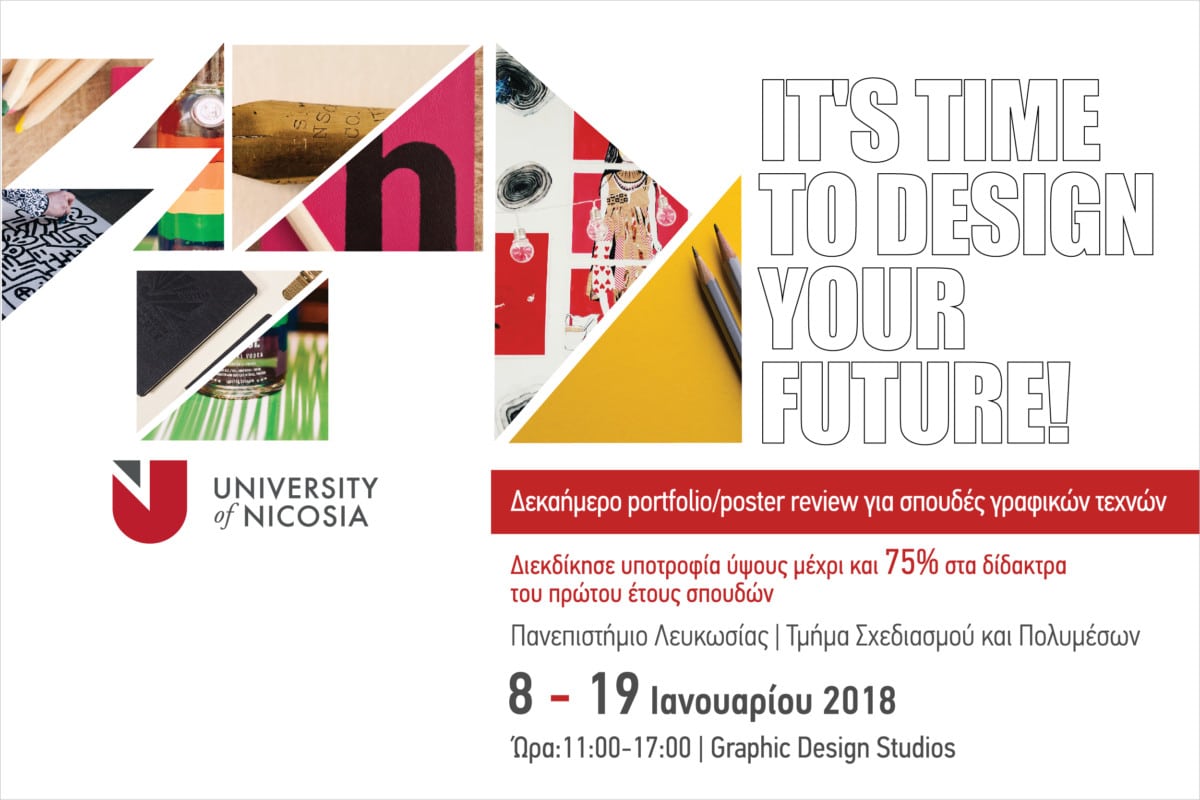 Δεκαήμερο αξιολόγησης πορτφόλιο ή πόστερ για όσους ενδιαφέρονται για σπουδές Γραφικών Τεχνών διοργανώνει το Τμήμα Σχεδιασμού και Πολυμέσων του Πανεπιστημίου Λευκωσίας. Θέλετε να εργαστείτε ως graphic designers στο δημόσιο ή ιδιωτικό τομέα; Σας ενδιαφέρει ο σχεδιασμός ψηφιακών προϊόντων και εφαρμογών; Ονειρεύεστε να ξεκινήσετε το δικό σας design studio;