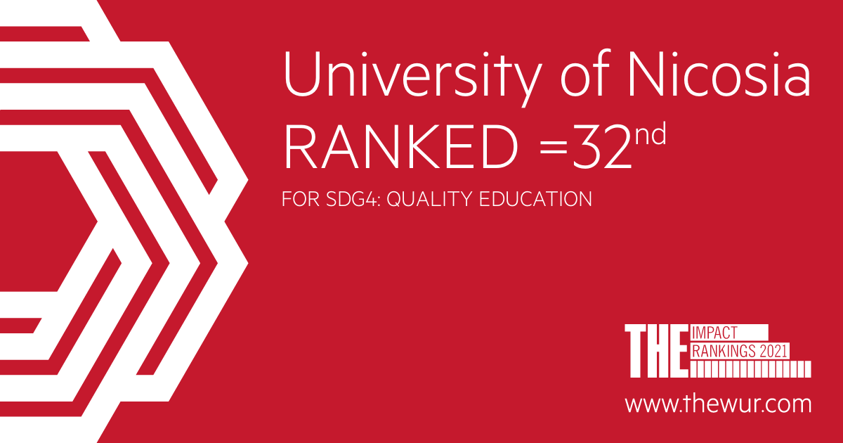 Κατατάσσεται στη θέση #32 στην κατηγορία της Ποιοτικής Εκπαίδευσης, δηλαδή είναι #1 στην Κύπρο και στην Ελλάδα και ανάμεσα στα 15 κορυφαία πανεπιστήμια στην ΕΕ. Επιπλέον βρίσκεται ανάμεσα στα κορυφαία 401-600 πανεπιστήμια παγκοσμίως με σημαντική ευρύτερη κοινωνική και οικονομική συνεισφορά.