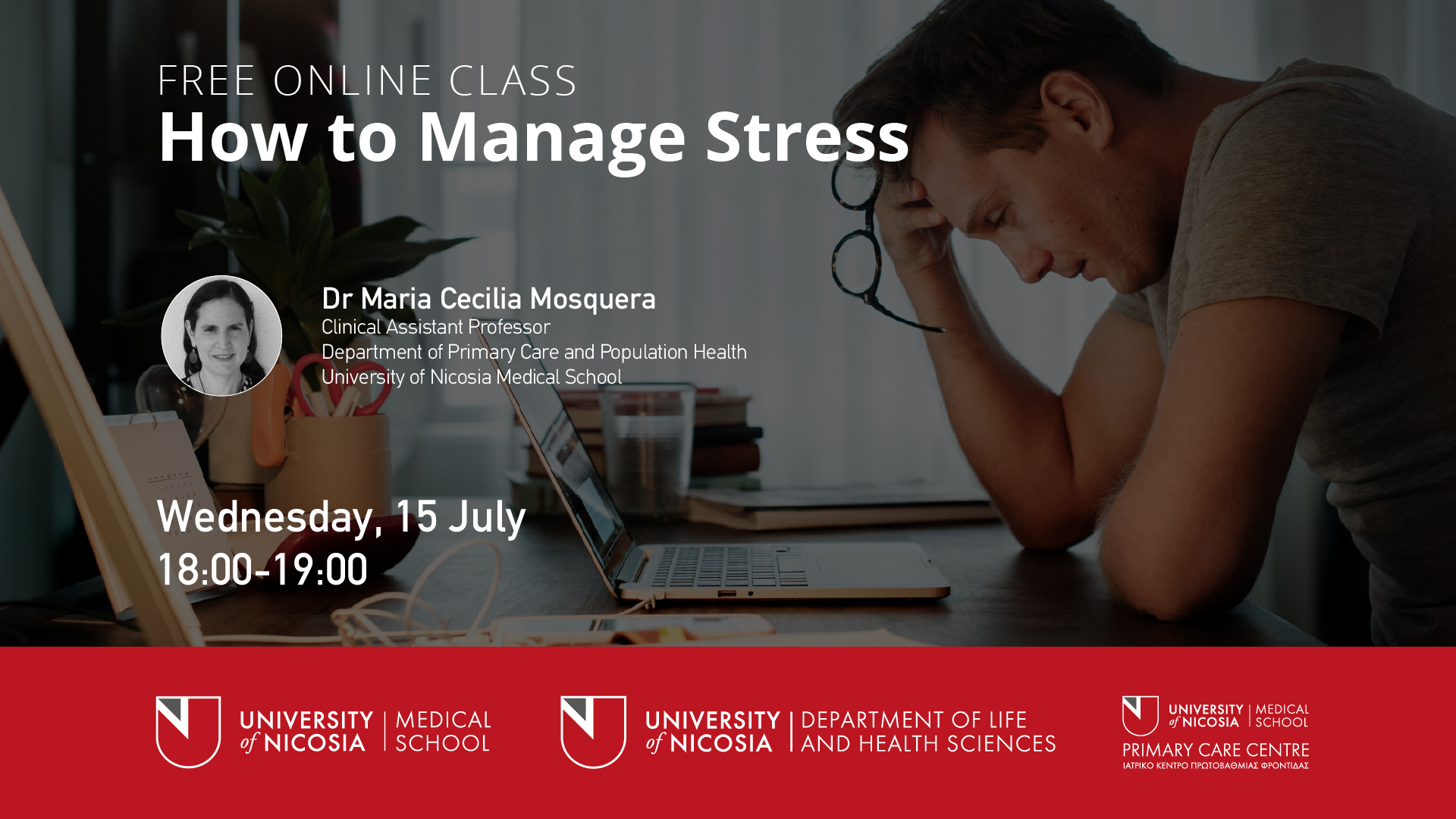 Learn how to manage stress with Dr Maria Cecilia Mosquera, Clinical Assistant Professor in the Department of Primary Care and Population Health at the University of Nicosia Medical School.