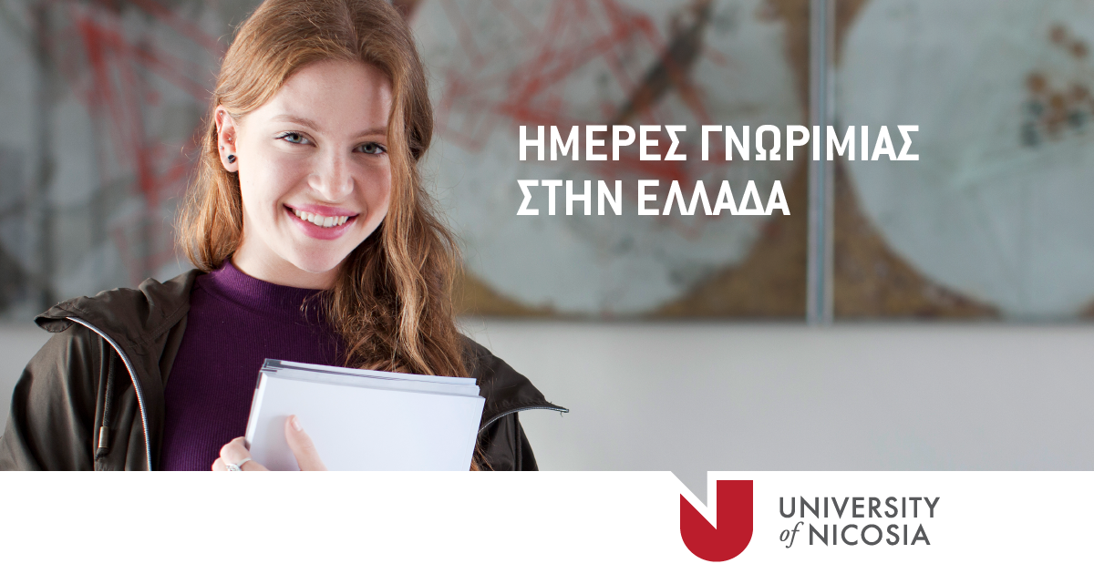 Το Πανεπιστήμιο Λευκωσίας σας προσκαλεί σε Ημέρες Γνωριμίας στην Ελλάδα, όπου θα έχετε την ευκαιρία να ενημερωθείτε για τα προγράμματα σπουδών που σας ενδιαφέρουν για το ακαδημαϊκό έτος 2019-2020 και τα πλεονεκτήματα που προσφέρει το Πανεπιστήμιο, το οποίο κατατάσσεται από τον παγκόσμιο οργανισμό QS World University Rankings, στον αριθμό 91 στην Περιφέρεια της Αναδυόμενης Ευρώπης και της Κεντρικής Ασίας (EECA) για το 2019.