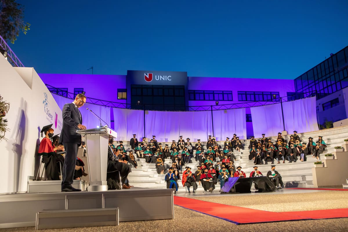 Κατά τον χαιρετισμό του στην Τελετή Αποφοίτησης της Ιατρικής Σχολής του Πανεπιστημίου Λευκωσίας, ο Υπουργός Υγείας, κ. Κωνσταντίνος Ιωάννου, εξέφρασε τις ευχαριστίες του για τη συνεισφορά της Σχολής, κατά τους τελευταίους δεκαπέντε μήνες, στις προσπάθειες της Πολιτείας να αντιμετωπίσει την πανδημία. Χαρακτήρισε μάλιστα τη συνεργασία ως απόδειξη της σημασίας των συνεργειών μεταξύ των ακαδημαϊκών ιδρυμάτων και του κράτους σε περιόδους κρίσεων.