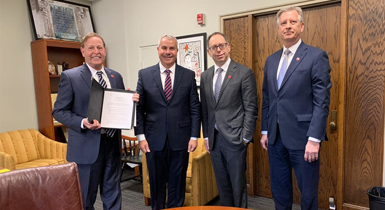 The MoU was signed on Tuesday 5 November 2019 at the University of Illinois by the Executive Dean of UNIC Medical School, Professor Andreas Charalambous (2nd left) and by the Dean of UIC, Professor Mark Rosenblatt (3rd left) in the presence of Vice Chancellor for Health Affairs of the UIC, Professor Robert Barish (left) and Vice Provost for Global Engagement of the UIC, Dr Neal McCrillis (right)