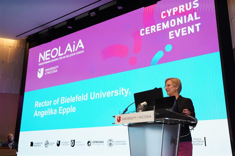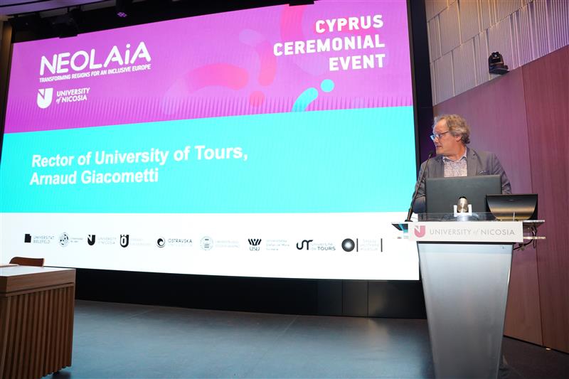 Το Πανεπιστήμιο Λευκωσίας φιλοξένησε με επιτυχία εορταστική εκδήλωση για να γιορτάσει τη συμμετοχή του στη Συμμαχία Ευρωπαϊκών Πανεπιστημίων NEOLAiA (https://neolaiacampus.eu/). Μέσω της συνεργασίας και της καινοτομίας, η συμμαχία επιδιώκει να βελτιώσει την ποιότητα της εκπαίδευσης και της έρευνας, να προωθήσει την πολιτιστική ανταλλαγή και να συμβάλει στην ανάπτυξη μιας πιο συμπεριληπτικής και βιώσιμης ευρωπαϊκής κοινωνίας.