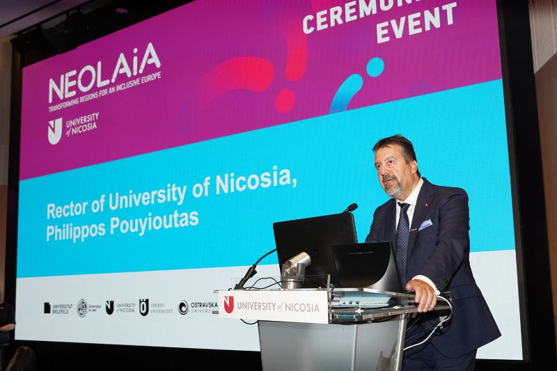 Στην εναρκτήρια ομιλία του, ο Πρύτανης του Πανεπιστημίου Λευκωσίας, Καθηγητής Φίλιππος Πουγιούτας, τόνισε τη σημασία της διεθνούς συνεργασίας στην ανώτατη εκπαίδευση και σημείωσε: «Θα ήθελα να επαναβεβαιώσω τη δέσμευσή μας, ως NEOLAiA, στα ιδανικά της συνεργασίας, της αριστείας και της ενότητας που στηρίζουν τις Ευρωπαϊκές Συμμαχίες Πανεπιστημίων. Μαζί με τα πανεπιστήμια-εταίρους μας, έχουμε θέσει φιλόδοξους στόχους για να διαπρέψουμε στη διδασκαλία, μάθηση, έρευνα, καινοτομία και κοινωνική προσφορά. Σε αυτό το πλαίσιο, οι πυλώνες της συμμαχίας NEOLAiA για τη διαφορετικότητα και τη συμπερίληψη, την ψηφιακή και πράσινη μετάβαση και την ενισχυμένη κινητικότητα θα μας καθοδηγήσουν στην υλοποίηση των στόχων μας σύμφωνα με τις στρατηγικές προτεραιότητες της Ευρωπαϊκής Επιτροπής για μια πιο ανταγωνιστική Ευρώπη. Μαζί, μπορούμε να δημιουργήσουμε ένα φωτεινότερο μέλλον για τους φοιτητές και τα ιδρύματά μας. Μαζί μπορούμε να διασφαλίσουμε ότι η Ευρώπη συνεχίζει να είναι πυλώνας αλληλεγγύης, δημοκρατίας, ασφάλειας και ευημερίας.»