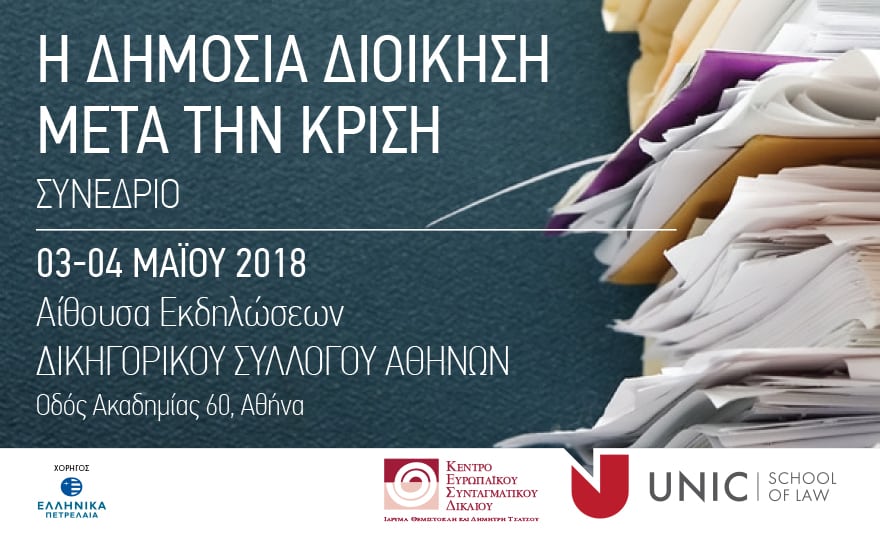 Το Κέντρο Ευρωπαϊκού Συνταγματικού Δικαίου – Ίδρυμα Θεμιστοκλή και Δημήτρη Τσάτσου και η Νομική Σχολή του Πανεπιστημίου Λευκωσίας διοργανώνουν Συνέδριο με θέμα: «Η Δημόσια Διοίκηση μετά την κρίση».