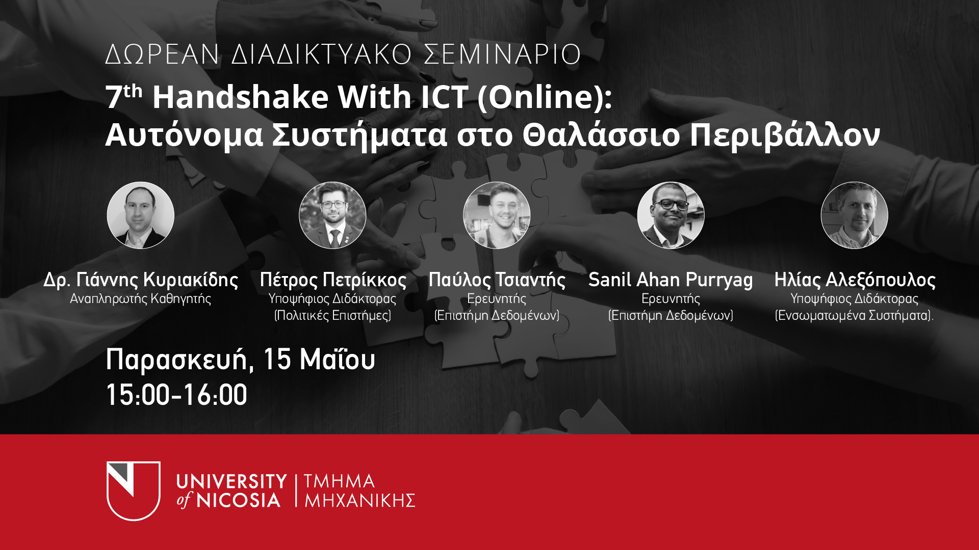 Webinar – 7th Handshake With ICT (Online): Αυτόνομα Συστήματα στο Θαλάσσιο Περιβάλλον