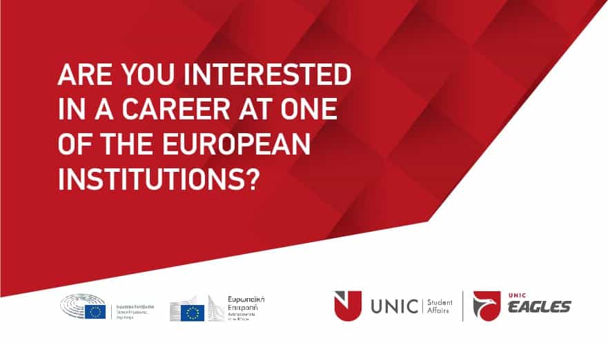 The Careers Office and the European Public Space of the European Parliament Information Office in Cyprus organise a seminar for UNIC students and alumni entitled “Are you Interested in a Career at one of the European Institutions?”.
