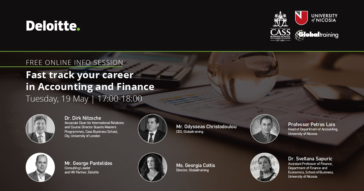 The study route offers candidates the opportunity to start off their studies at UNIC in Cyprus and then continue at the Cass Business School (City University of London) to obtain the Bachelor Degree “BSc Accounting and Finance”, while building their professional skills working alongside Deloitte professionals.