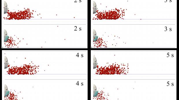 Talib Dbouk y Dimitris Drikakis, autores de la investigación y expertos en física de fluidos, utilizaron modelos matemáticos para crear posibles rutas del flujo de estas pequeñas gotas cuando una persona tose repetidamente, con y sin mascarilla. Los resultados muestran que esta herramienta de contención puede reducir a la mitad la transmisión de partículas en el aire, ya que sin ellas las gotas pueden llegar hasta los cinco metros de distancia. Sin embargo, la eficacia de filtrado de las máscaras se ve seriamente afectada por la tos recurrente, un síntoma muy usual del Covid-19…