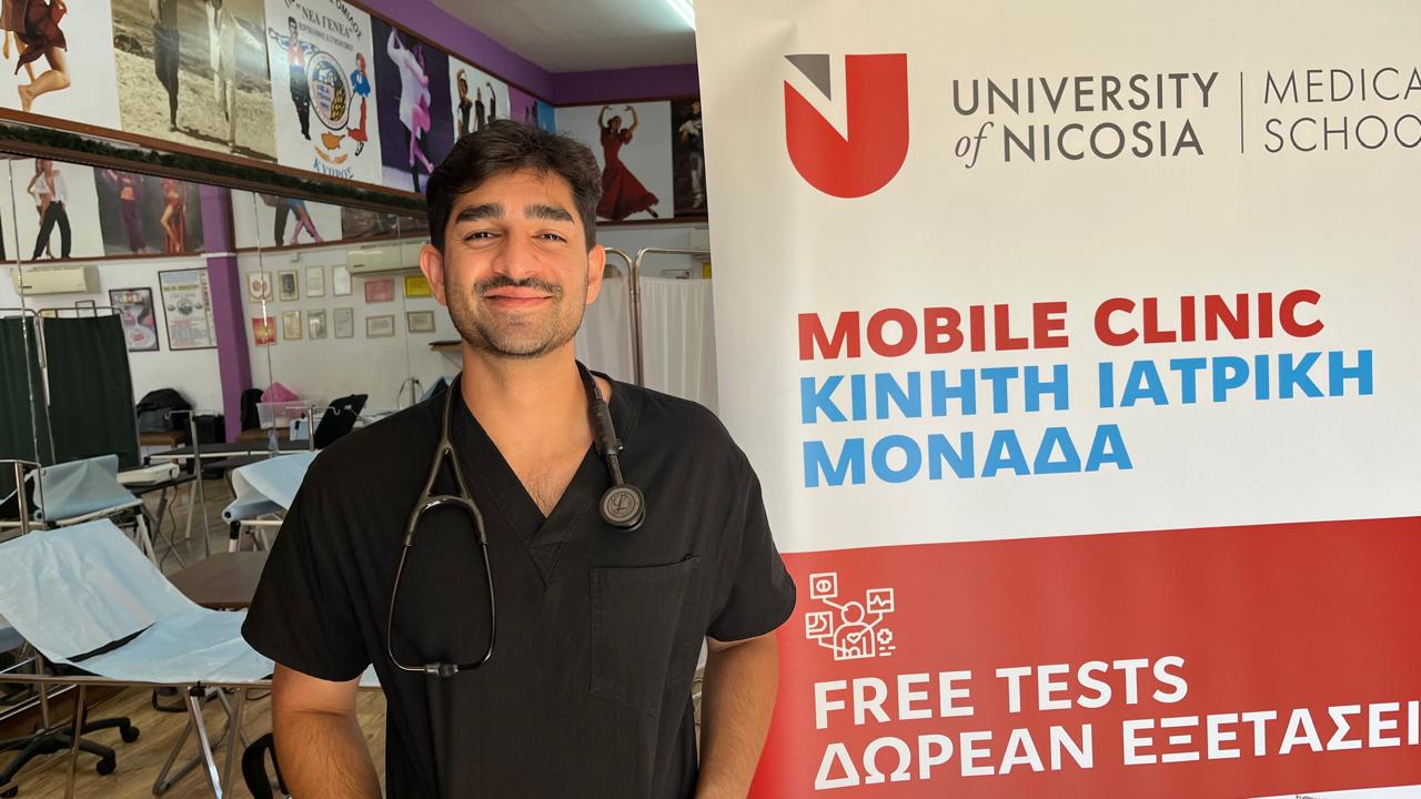 ‘I spent a day volunteering at the mobile clinic in Oroklini, where I assisted with ECGs, BMI assessments, and glucose testing for community members. The experience allowed me to contribute in a meaningful way while further developing my clinical skills in a hands-on setting, supporting individuals who may have limited access to routine healthcare services’.