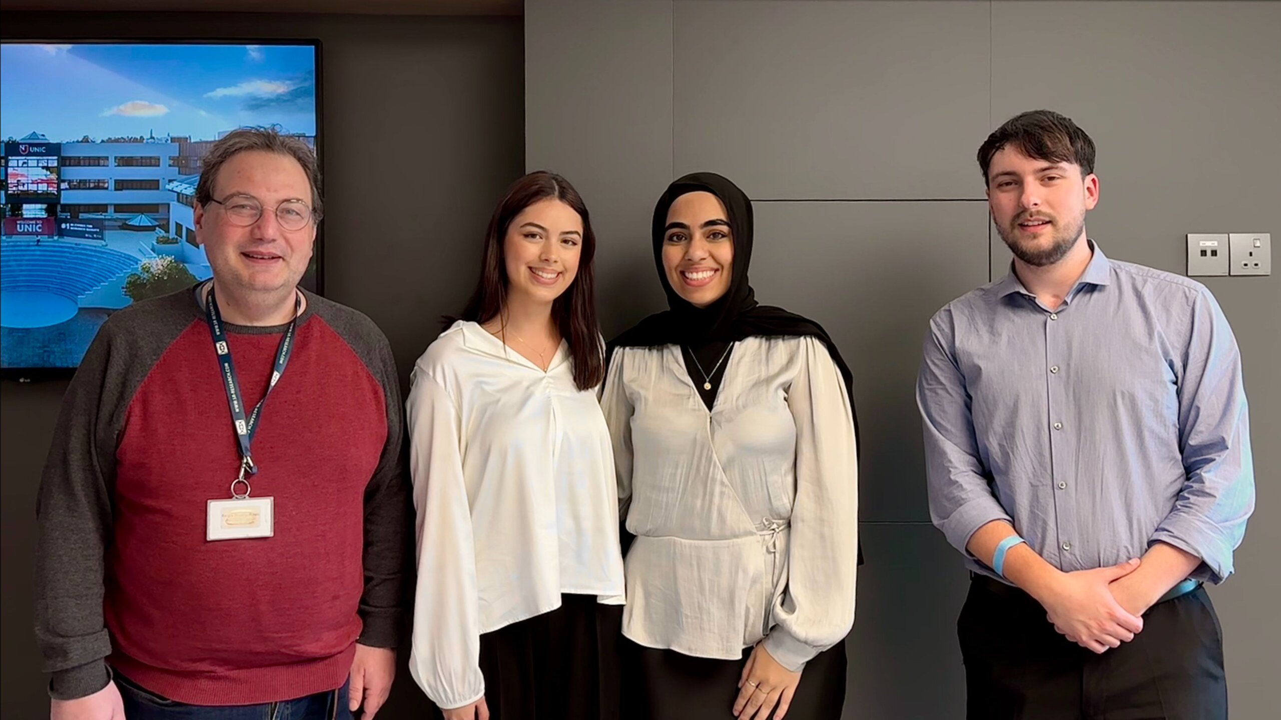 L-R: Prof Avgis Hadjipapas, Vanina Veeraragoo, Nour Abdelaziz and Paul Rotelli at the UNIC Health Student Research Conference in March 2025