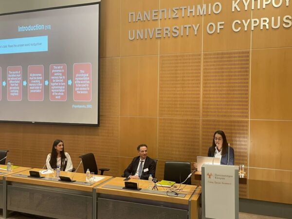 Στο 21ο Παγκύπριο Επιστημονικό Συνέδριο του Εκπαιδευτικού Ομίλου Κύπρου με θέμα «Σχολική Πραγματικότητα: Προκλήσεις και Δυνατότητες», το οποίο πραγματοποιήθηκε στις 21-22 Οκτωβρίου 2022 στο Πανεπιστήμιο Λευκωσίας, η Δρ Αργυρώ Φελλά παρουσίασε εισήγηση με θέμα The cognitive profile of students with reading disabilities in Greek. Στόχος της εισήγησης ήταν να παρουσιάσει συνοπτικά ένα θεωρητικά δομημένο ερμηνευτικό πλαίσιο για τη μελέτη της σχέσης της φωνολογικής επίγνωσης και της ταχείας ονομασίας ερεθισμάτων με την αναγνωστική ανάπτυξη και τις συναφείς δυσκολίες στην ελληνική γλώσσα.
