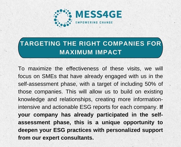 As part of its ongoing commitment to enhancing Environmental, Social, and Governance (ESG) reporting in small and medium-sized enterprises (SMEs), the MESS4GE project is excited to announce the launch of a critical initiative under Working Package 4: “Sending the Message.”