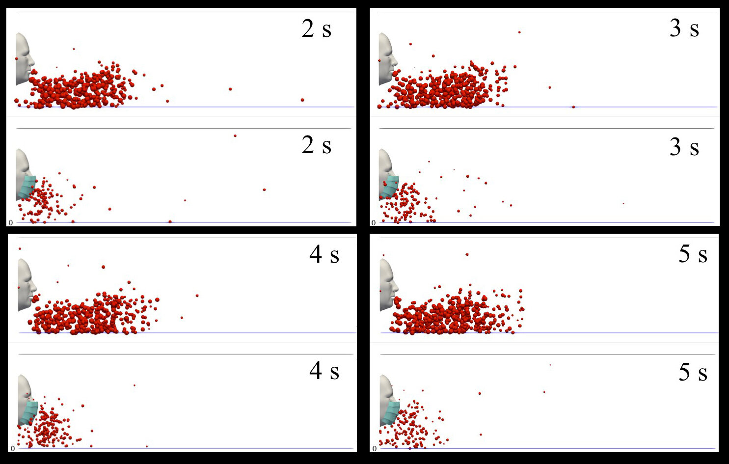 Previous work from this research group showed droplets of saliva can travel 18 feet in five seconds when an unmasked person coughs. This new work used an extended model to consider the effect of face masks and multiple cycles of coughing…