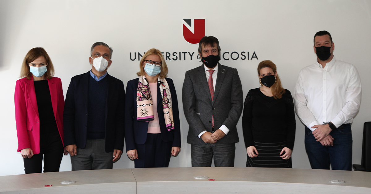 Referring to the internationalization initiatives and the broader strategy of the European Union vis-à-vis Higher Education, Professor Pouyioutas briefed the Ambassador on the inclusion of the University of Nicosia in the newly established NEOLAiA European University Alliance.
