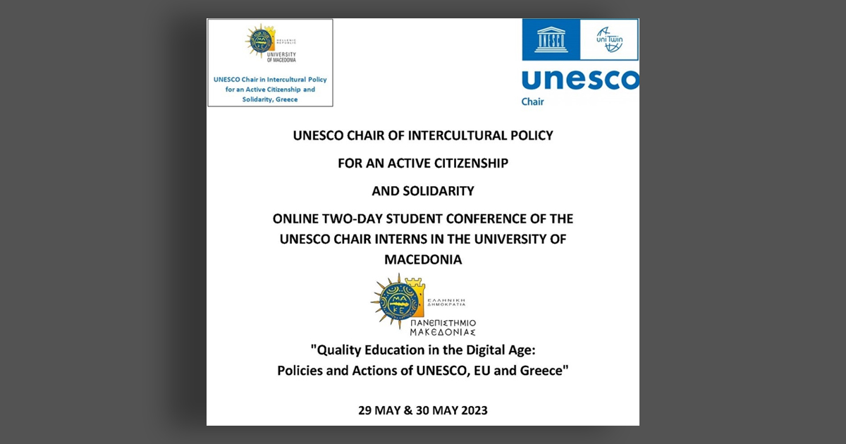 Η Έδρα UNESCO του Πανεπιστημίου Λευκωσίας θα συμμετέχει με εισήγηση στο 2ο Φοιτητικό Συνέδριο με τίτλο: «Ποιοτική Εκπαίδευση στην Ψηφιακή Εποχή στο πλαίσιο της UNESCO, της Ευρωπαϊκής Ένωσης και της Ελλάδας»