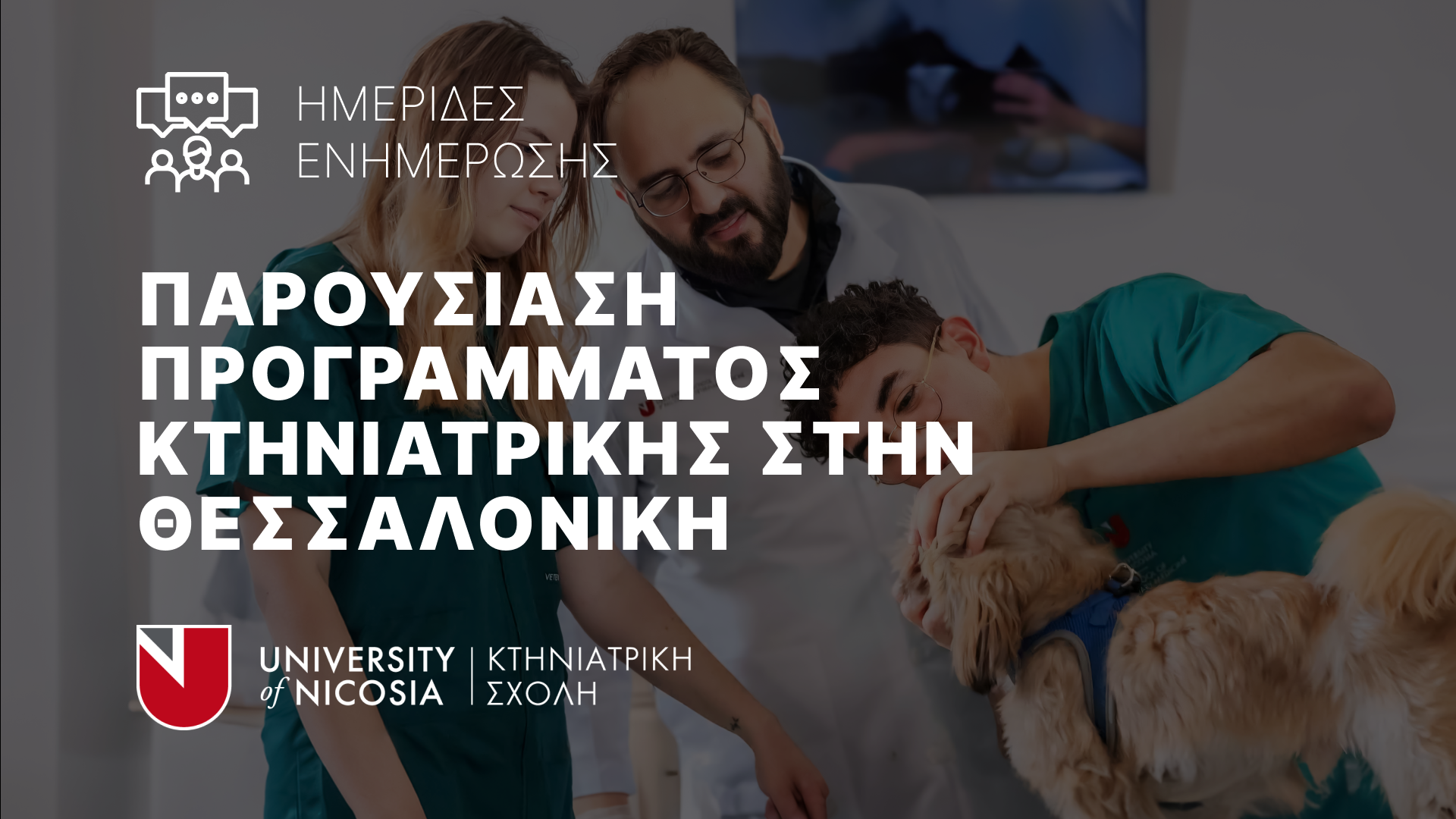 Η Κτηνιατρική Σχολή του Πανεπιστημίου Λευκωσίας σας προσκαλεί σε Ημερίδες Ενημέρωσης με θέμα «Γιατί το Πανεπιστήμιο Λευκωσίας είναι η ιδανική επιλογή για σπουδές Κτηνιατρικής στην Ευρώπη» σε Αθήνα και Θεσσαλονίκη.