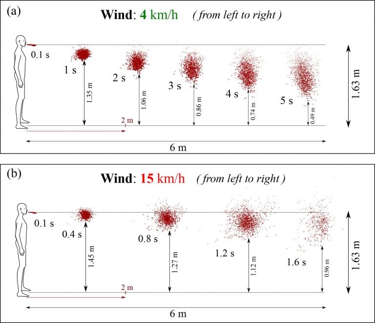 In a paper published in Physics of Fluids, from AIP Publishing, Talib Dbouk and Dimitris Drikakis of University of Nicosia discovered that with even a slight breeze of 4 kph, saliva travels 18 feet in 5 seconds.